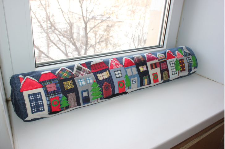 19. Подушка-валик зі старих джинсів і клаптиків тканини