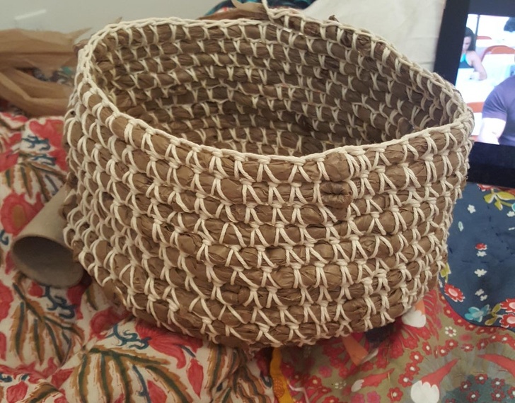 11. «Я почав в'язати цю корзину з пластикових пакетів, які збирав дому»