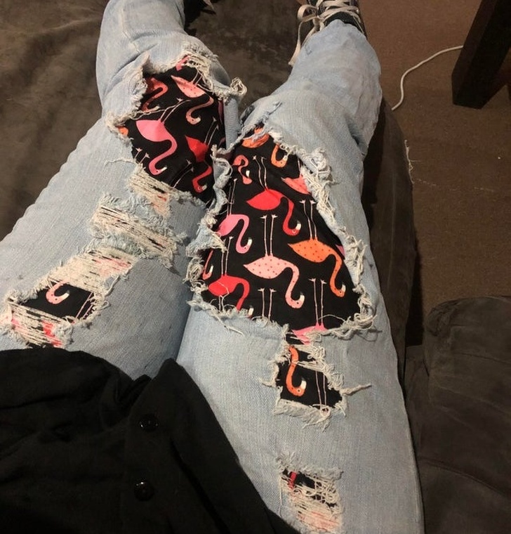 16. «Я не хотіла викидати улюблені джинси, тому зробила такі вставки з фламінго»