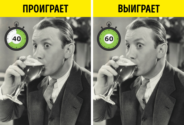 - Що будуть робити опоненти: ваші суперники постараються впоратися із завданням як можна швидше, щоб виграти парі. І, швидше за все, впораються навіть за менший час. От тільки це не обіцяє для них нічого доброго: на завдання потрібно було витратити саме хвилину, а не 30 чи 40 секунд.