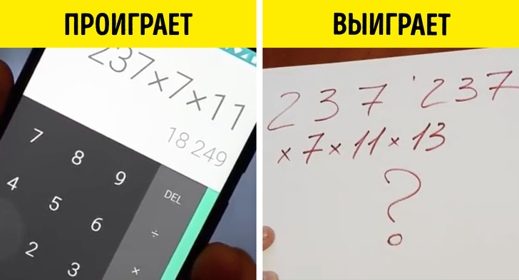 - Мета: один пише на листку будь-3-значне число. Далі ви обидва повинні як можна швидше помножити це число спочатку на 7, потім на 11 і потім на 13. Притому одному дозволяється користуватися калькулятором.