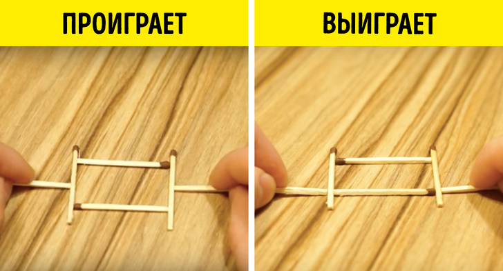 - Що будуть робити опоненти: найбільш логічним способом впоратися з цим завданням виглядає таке рішення: натиснути двома сірниками посередині протилежних сторін прямокутника. Але насправді при такому підході фігура неминуче розвалиться.