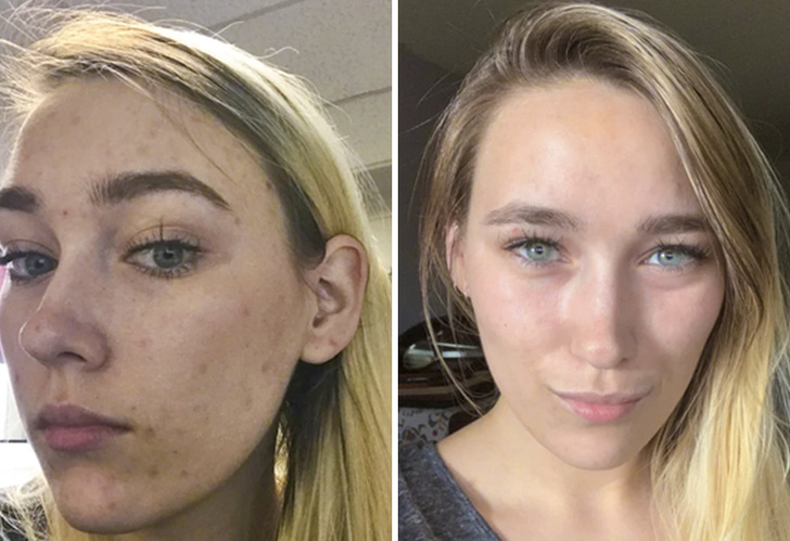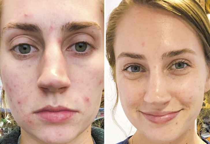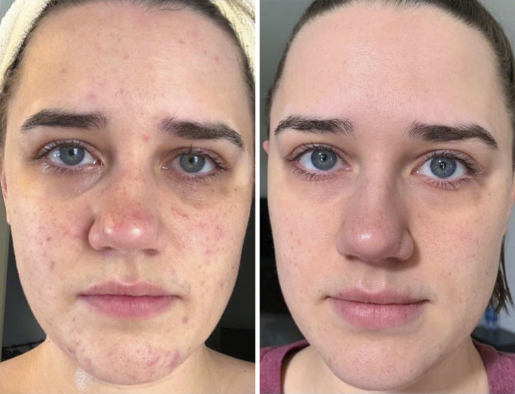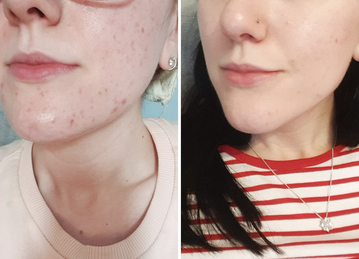 Автору поста під ніком Hohfflepuff протягом 10 років докучали висипання на обличчі, і в кінці кінців вона звернулася до дерматолога. Крім прийому антибіотиків протягом місяця вона також змінила свій щоденний догляд за шкірою. Результат ми можемо бачити на фото вище.