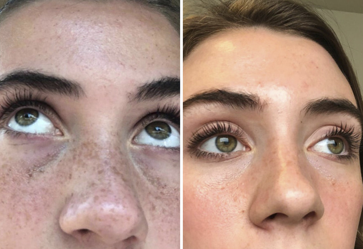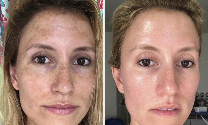 Різниця між фото — рівно 1 рік. За словами Kale_Whale, її шкіра жирна, але зневоднена, і приблизно за 1-2 роки до моменту, коли було зроблено перше фото, вона помітила пігментні плями на лобі і щоках. Основні засоби, які дали ефект, — це третиноїн (форма вітаміну А), вітамін С і сонцезахисний крем.