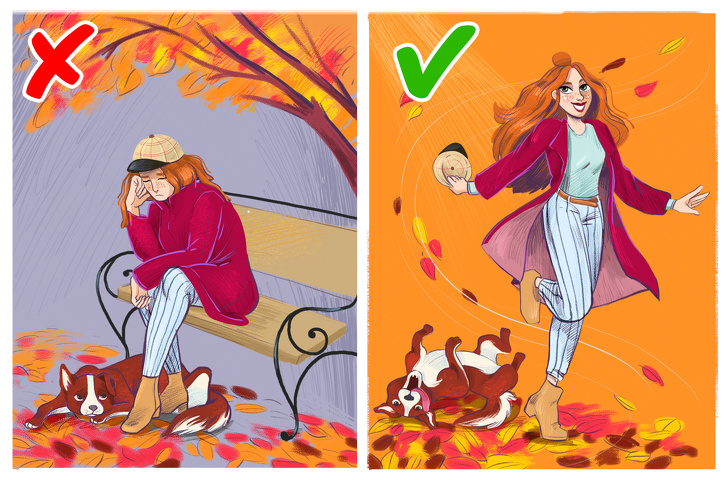 Зробіть свідоме зусилля — відчуйте момент і залишайтеся у ньому. Відчуйте смаки, запахи, подивіться, у що ви одягнені, відчуйте, дме вітер. Іноді, щоб відчути себе щасливим, взагалі не потрібно нічого робити — достатньо просто спостерігати за тим, що відбувається навколо, і усвідомити себе частиною цього.
