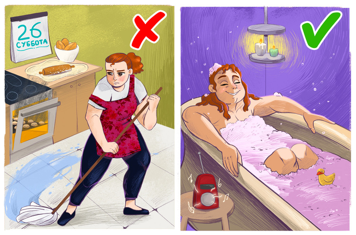 Чому погана звичка: Прагнення приносити користь кожну хвилину призводить до того, що людина перестає помічати різницю між бажанням взагалі нічого не робити, лінню, і розслабленням, що необхідно організму. Час, присвячений собі, починає сприйматися як вкрадене у сім'ї або в кар'єри. Провівши день в ліжку за переглядом улюбленого серіалу, ми часом відчуваємо сором і розчарування, і в спробах загладити свою провину на наступний день перемываем весь будинок зверху до низу, затримуємося на роботі або готуємо складний вечерю. Знайоме?