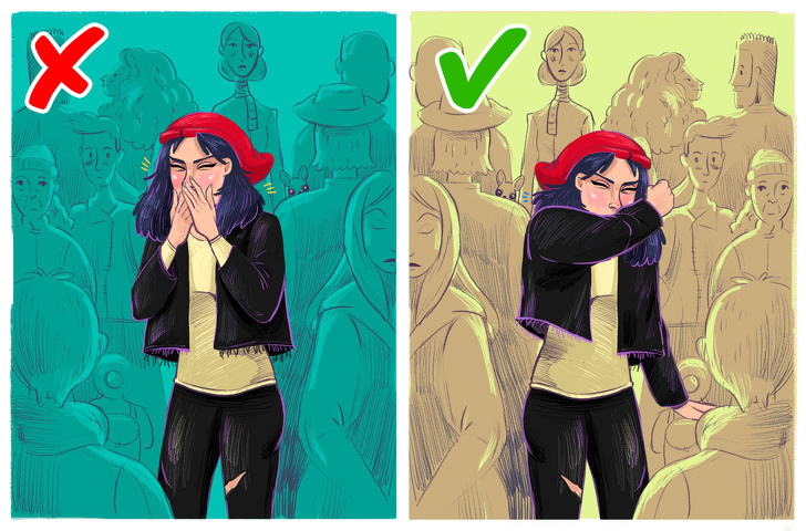 Немає серветки або не встигнете її дістати? Чхайте в рукав або згин ліктя. Це краще, ніж варіант, при якому ваша долоня стане розсадником інфекцій.