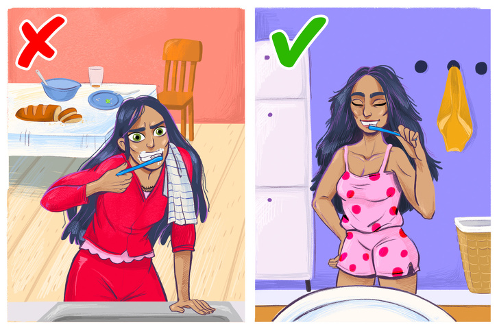 Чому погана звичка: Після їжі кислотність ротової порожнини збільшена, тому чищення зубів призводить до демінералізації зубів і провокує швидку ерозію емалі. Чистячи зуби після сніданку, ви допомагаєте кислоті дістатися до дентину.