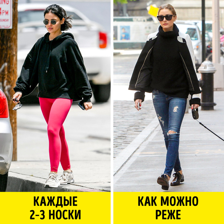 Зовсім по-іншому йдуть справи з легінсами. Проблема всієї щільно облягає одягу в тому, що вона занадто добре вбирає піт і на ній створюється сприятливе середовище для розмноження бактерій, за цього і з'являється неприємний запах. Якщо ви носите легінси в повсякденному житті, то прати їх можна після 2-3 носок, а якщо інтенсивно тренуєтеся в них, то після кожного тренування.