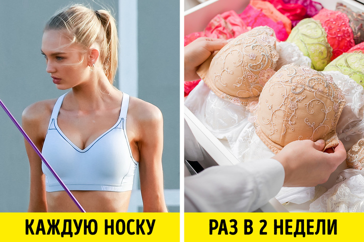 Маючи в запасі кілька комплектів нижньої білизни, можна щодня змінювати їх і прати ліфчики рідше. Так збережено їх товарний вигляд, вони не розтягуються і не втрачають форму. Що стосується спортивних топів, то варіантів немає: прати необхідно після кожного використання.
