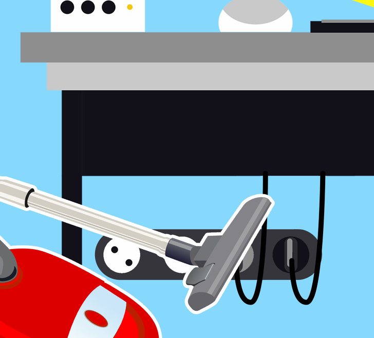 Очистити електричні шнури за допомогою пилососа може виглядати зручним рішенням. Але насадки і потужність всмоктування здатні пошкодити шнур і оголити або порвати дрібні проводки. Це не завжди видно і може загрожувати коротким замиканням або ударом струму. Тому краще уникати очищення скупчення проводів таким чином. Особливо якщо воно складається з шнурів різної товщини, як у випадку з робочим місцем або місцями підключення кухонної техніки.
