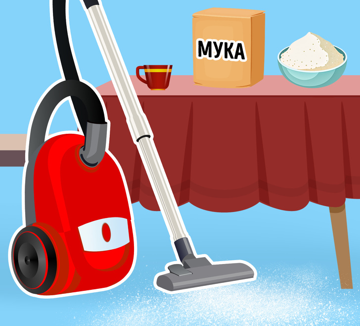 Фахівці кажуть, що в тому випадку, якщо потрібно прибрати борошно пилососом, звертайте увагу на її кількість. Невелика жменя не зашкодить приладу, а от якщо прокидалася пачка, то краще зібрати її вручну.