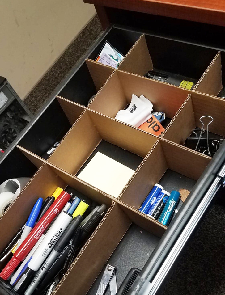 18. З картону виходить крутий органайзер для висувного ящика