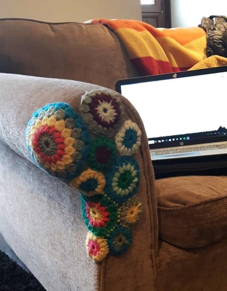 8. Якщо ваша кішка роздряпала диван до дірок, вміння в'язати гачком допоможе виправити проблему