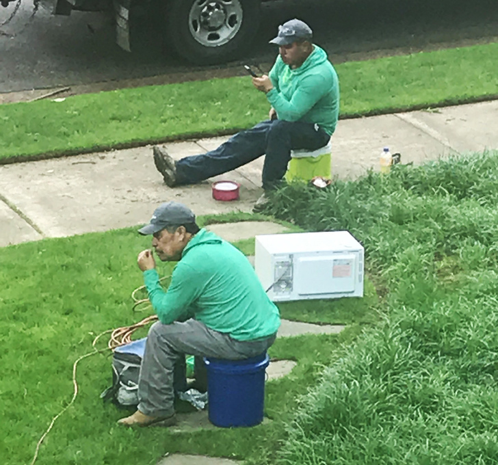 4. Робітники взяли з собою мікрохвильовку, щоб обідати гарячим