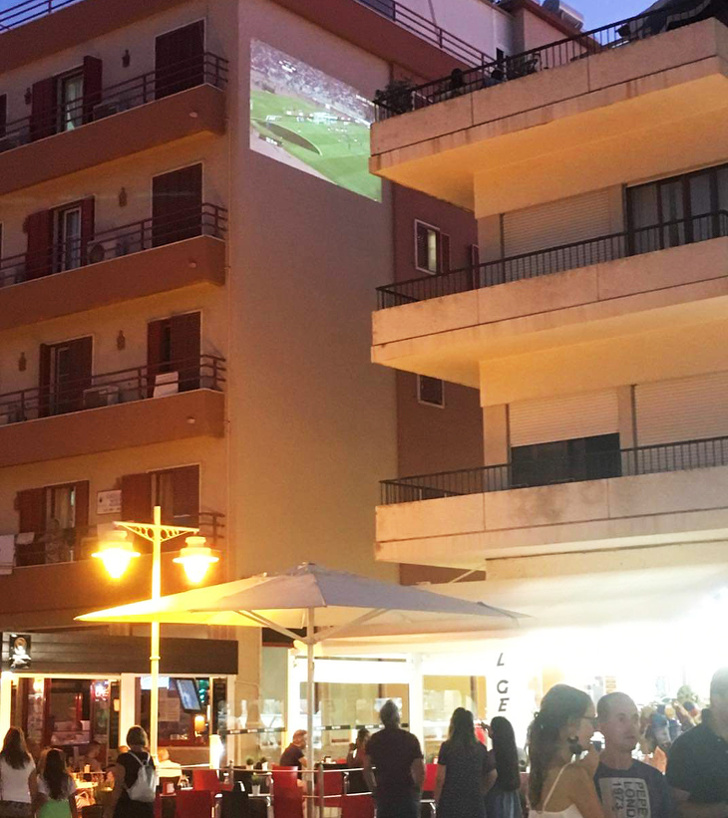 1. Ці хлопці дивляться футбольний матч, використовуючи стіну сусіднього будинку як екран для проектора