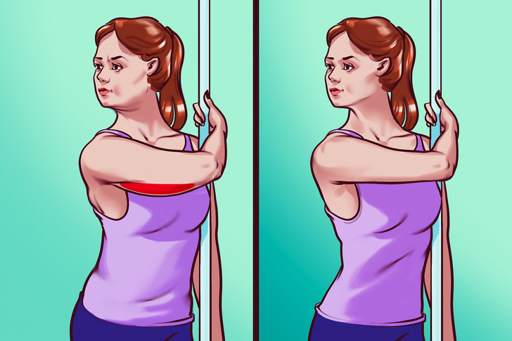 - Зіпріться плечем об вертикальну планку. Можна використовувати одвірок.