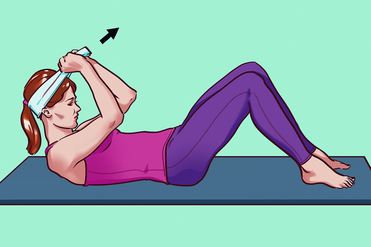 - Потягніть рушник вгору, намагаючись витягати шию. Тримайте лікті розведеними, щоб не заважати вільному диханню.