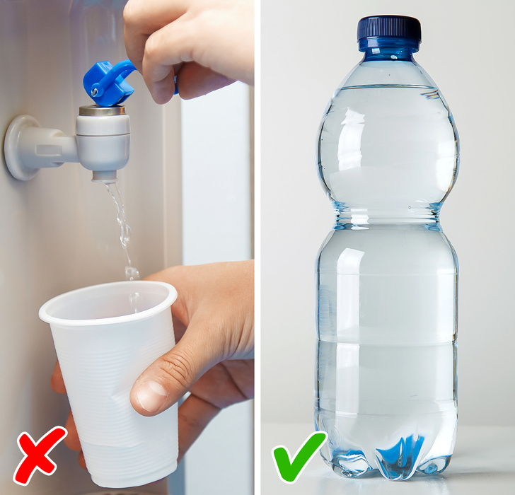 - Якщо ви не впевнені на 100 %, звідки вода в кулері, краще приносьте свою. Буває, що в цілях економії в клубах використовують звичайну воду з-під крана, налиту в найближчому туалеті.