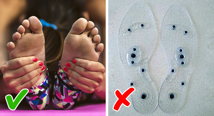 - Спеціальні устілки ортопедичні кросівки не лікують ноги, якщо у вас плоскостопість. Ефективніше робити розігріваючий масаж стоп і виконувати вправи, наприклад намагатися підняти з підлоги олівець пальцями ніг.