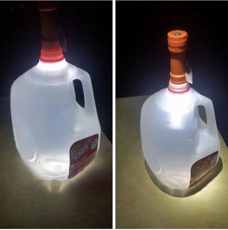 6. Якщо у вас відключилася електрика, то така конструкція з ліхтарика і пляшки води зможе освітити кімнату цілком