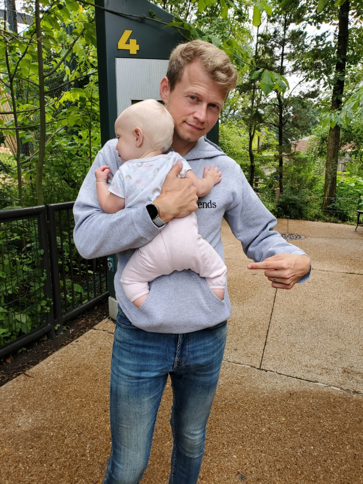 14. Лайфхак для забудькуватих батьків: ноги дитини можна зігріти з допомогою татовій толстовки