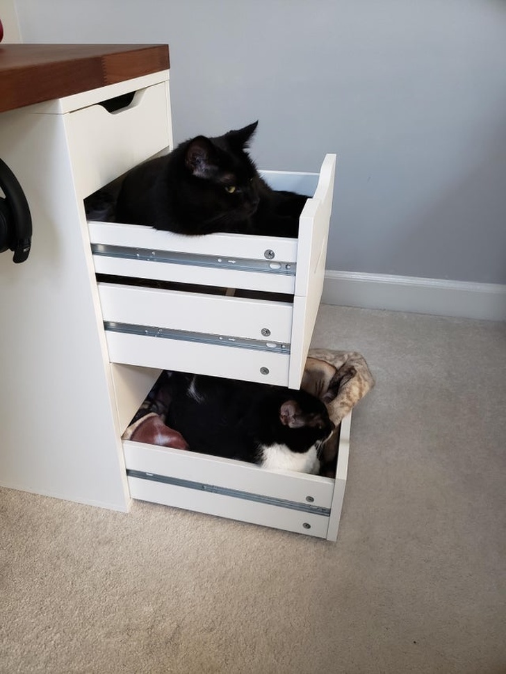 13. Ваші кішки забираються на клавіатуру і заважають працювати? Відкрийте ящики столу, і пухнасті улюбленці влаштуються в них
