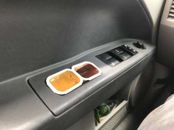 7. Виїмка в водійських дверей ідеально підходить для зберігання соусів. Тільки не їжте за кермом, це небезпечно