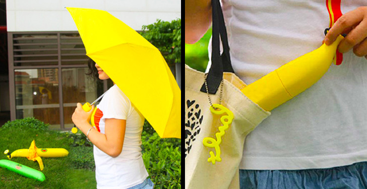 Яскравий парасольку, який в складеному вигляді схожий на банан, розфарбує дощові сірі будні.