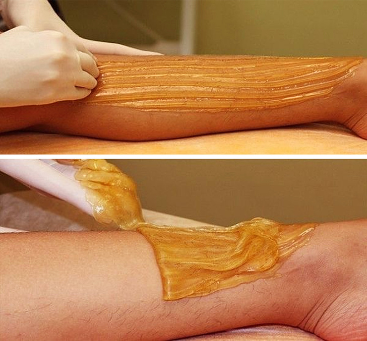 Текстура буде нагадувати карамелізований цукор, але не лякайтеся: дайте субстанції охолонути і добре перемішайте, поки вона не почне тягнутися, як жувальна гумка. Всі подальші маніпуляції абсолютно такі ж, як і при роботі з воском. Додаткова інформація тут.
