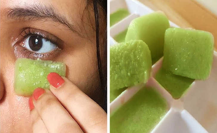 Овоч треба очистити і нарізати на шматочки, потім закинути в блендер, додати ложку води і гарненько збити. Отриману суміш вилийте у форму для льоду і відправте в морозильну камеру приблизно на 4-5 годин. Згодом потрібно взяти заморожений кубик і помасажувати ним особа, особливо область під очима, якщо вам потрібно позбутися від темних кіл і набряків. Інструкцію можна подивитися на відео за посиланням.