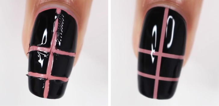 - Поверх стрічок знову нанесіть той же колір і відклю їх.