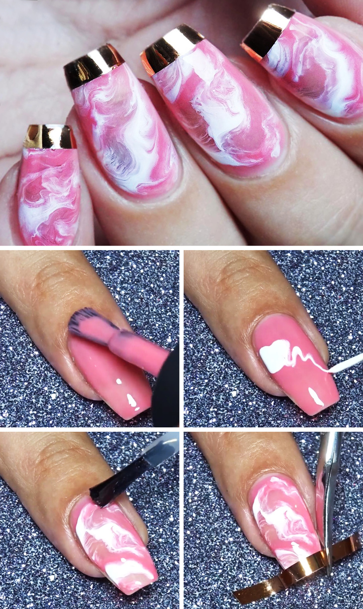 Ефект мармурових нігтів — вражаюче, але при цьому досить мінімалістичне (в залежності від обраної забарвлення) рішення.