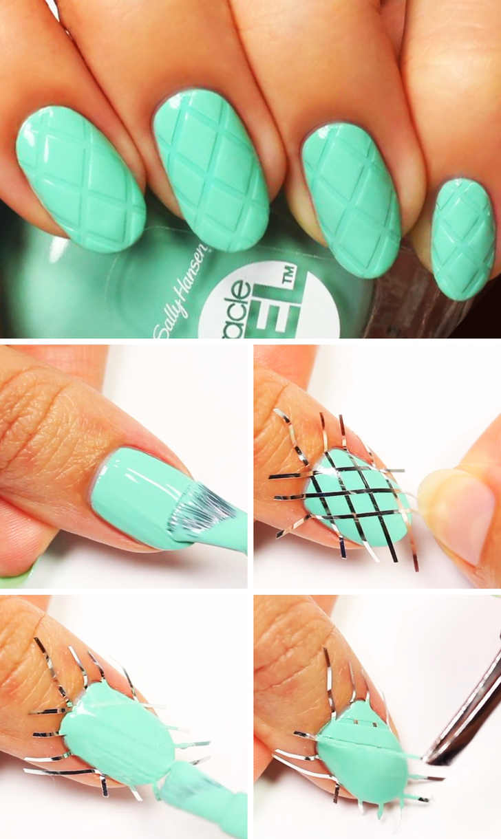 Щоб надати покриттю фактуру у вигляді ромбовидного, трикутного, квадратного або ще якого завгодно візерунка, вам так само знадобиться клеющаяся стрічка для дизайну.