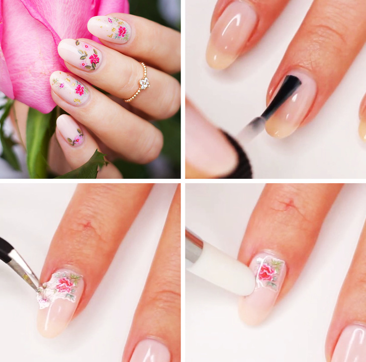 А вам доводилося ламати голову над тим, як же майстрам вдається так незвичайно точно малювати на нігтях маленькі витвори мистецтва? Вся справа в тому, що це не завжди ручна праця. Адже вже досить давно існують слайдер-дизайни — саме з їх допомогою можна зробити такий витончений квітковий манікюр, як на фото.