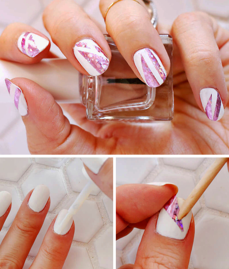 - Покрийте зверху білим лаком і зніміть стрічки.