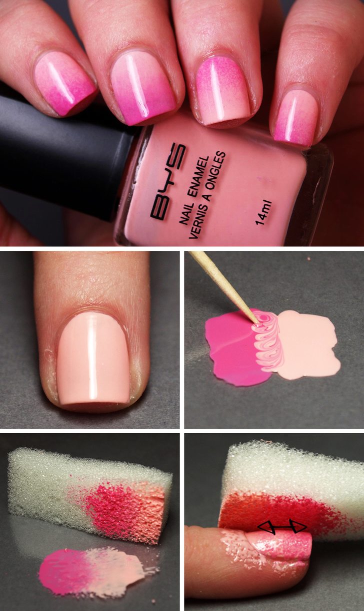 Ніжний ефект омбре, що завоював серця багатьох дівчат, робиться приблизно за тим же принципом, що і акварельний манікюр, хіба що з невеликими поправками: