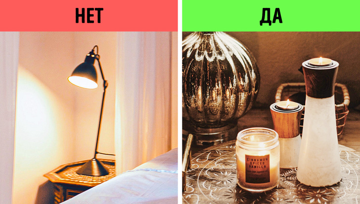 Сила аромату неймовірна, і якщо неприємний запах провокує відчуття дискомфорту і напруження, то свічки з ароматом лаванди і ромашки здатні вводити в набагато більш спокійний стан. Крім того, м'яке світло від свічок створить затишну атмосферу краще нічної лампи. Однак не забудьте погасити свічку перед сном або помістити її в спеціальну безпечну ємність.