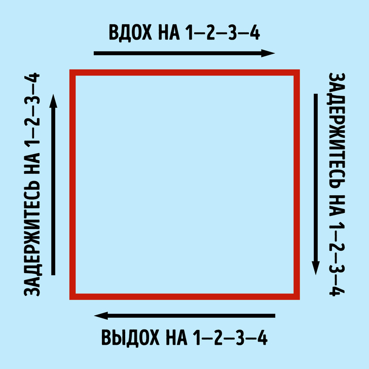 5. Знову затримайте дихання з повільним рахунком до 4 і повторіть квадрат.