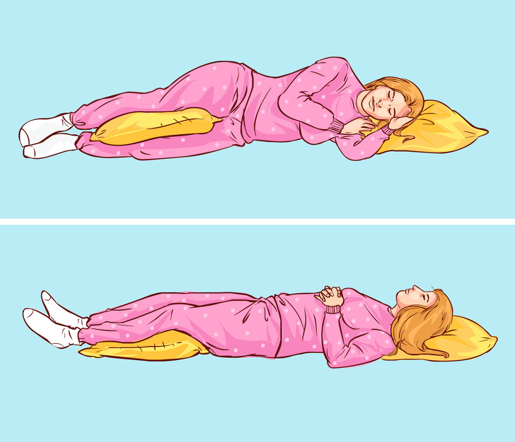 Якщо ви спите на боці, покладіть невелику подушку між колінами.