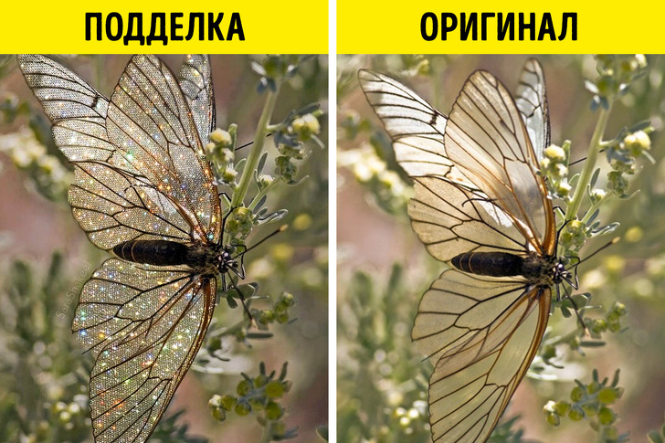 У квітні нинішнього року в деяких тематичних групах, присвячених природі, стала популярна ця фотографія метелики. За версією оригінальної публікації, метелик знаходиться під загрозою зникнення. Наприклад, постом, розміщеним на сторінці Earth Wonders, поділилося 76 тис. користувачів Facebook. І мало хто з них здогадувався, що ця ефектна метелик з «діамантовими» крилами — результат роботи в графічному редакторі.