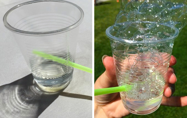 Видувати мильні бульбашки по одному теж непогано, але зробити відразу пучок за короткий час набагато більш захоплююче. А потрібно для цього всього-нічого: вода, рідке мило, пластиковий стаканчик і трубочка. Розгорнуті коментарі тут.