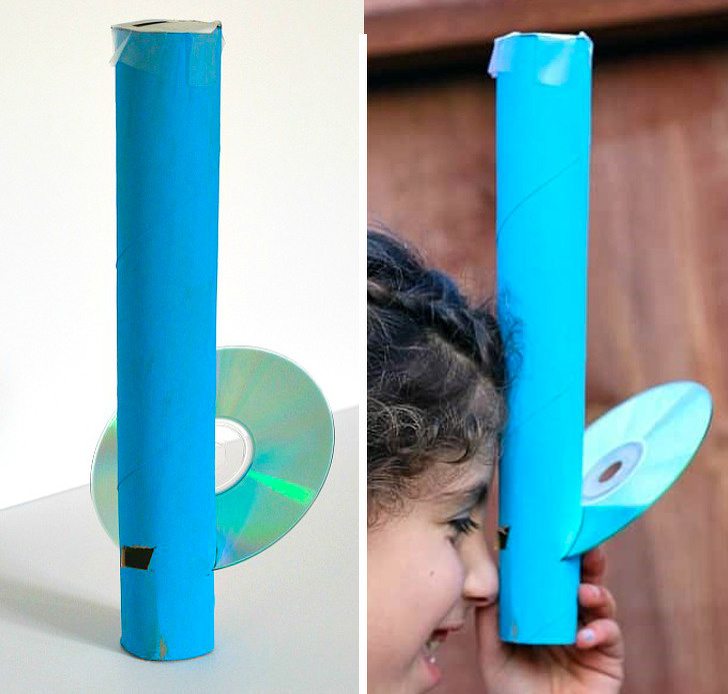 Експерименти зі світлом завжди вражаючі, особливо коли вони пов'язані з веселкою. Запропонуйте дітям зробити власний спектроскоп, щоб вони могли поспостерігати за різнокольоровими випромінюваннями. Для цього знадобиться картонна туба від серветок і старий непотрібний CD-диск. Маніпуляції, які потрібно провести, досить прості: покрокову ілюстрацію того, як і які поглиблення треба вирізати, ви можете подивитися за посиланням.