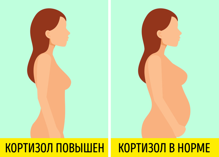 Підвищення ж рівня кортизолу загрожує гіпертонією, цукровим діабетом, виснаженням надниркових залоз, перепадами настрою і труднощі із зачаттям. При цьому не кортизол провокує стрес, а навпаки: коли відбувається кризова ситуація, організм переходить у стан «вижити»; а коли стоїть питання виживання (саме так організм сприймає стрес), то розмножуватися не має сенсу. Тому тим, хто готується стати мамою, і рекомендують зберігати спокій і по можливості уникати неприємних ситуацій.