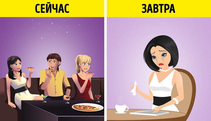 Пропустити ранковий або денний прийом їжі здається хитромудрої прийомом. Ми думаємо, що недолік калорій у першій половині дня можна легко компенсувати рясним і смачною вечерею - адже кількість калорій-те однакове! На жаль, це не працює: голод провокує дратівливість, зниження тонусу, а шанс переїсти ввечері різко зростає. Якщо не хочете їсти багато на сніданок або обід, замініть звичні тости бананом, горіхами або склянкою молока.
