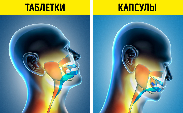 Таким чином слизова шлунка буде захищена від негативного хімічного впливу препарату. Отримати побічний ефект можна навіть від вдихання подрібненого ліки. Щоб уникнути неприємних відчуттів при ковтанні таблетки, дотримуйтесь схемою: при прийомі голову трохи нахиліть назад — потік води направить ліки в шлунок. При ковтанні капсул нахиляють голову до грудей, після чого ледве витягують вперед підборіддя.