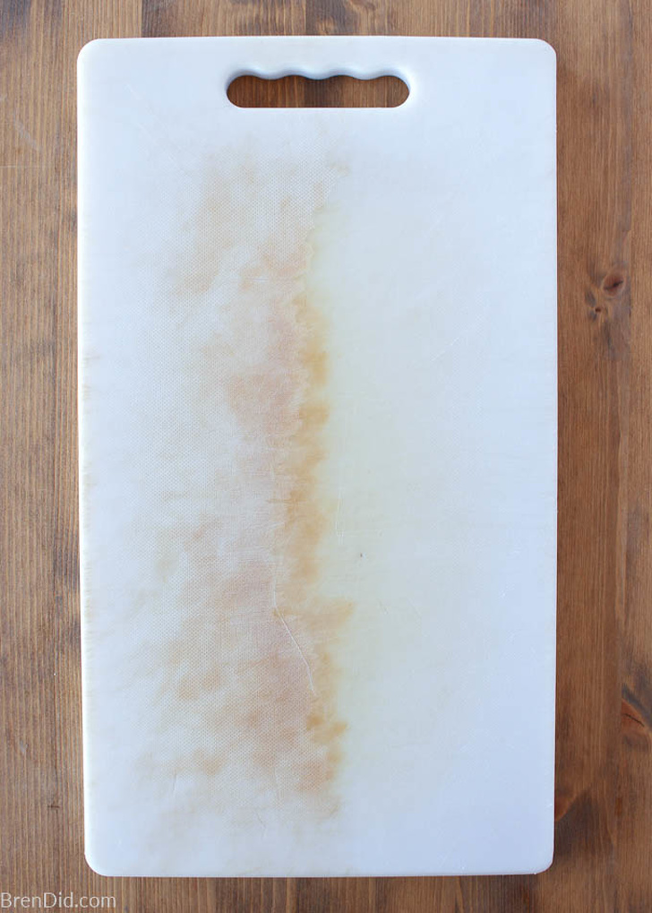 Змішайте наступні інгредієнти: 3-4 ст. л. харчової соди, 1 ст. л. миючого засобу для посуду і 1-2 ст. л. перекису водню. Нанесіть очищувальну пасту на поверхню й почекайте кілька годин (можна залишити на ніч). Детальніше читайте тут.