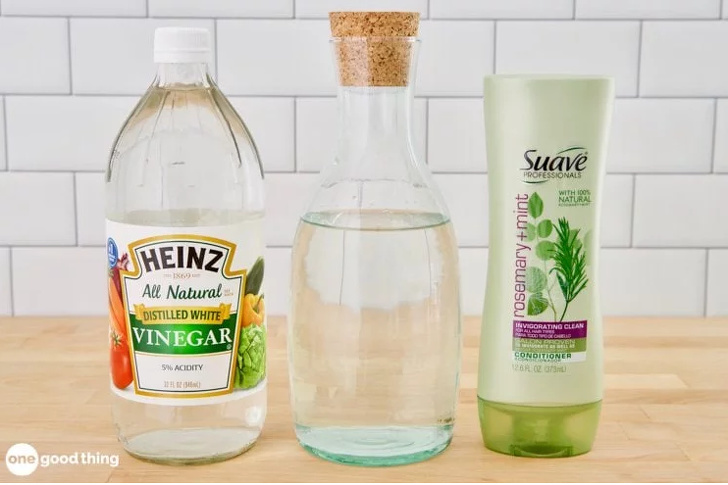 Змішайте 1 ч. л. кондиціонера для волосся, 1 ст. л. оцту і 2 склянки води. Розпиліть на одяг, розгладьте її руками і дочекайтеся повного висихання. Докладний опис способу можна побачити тут.