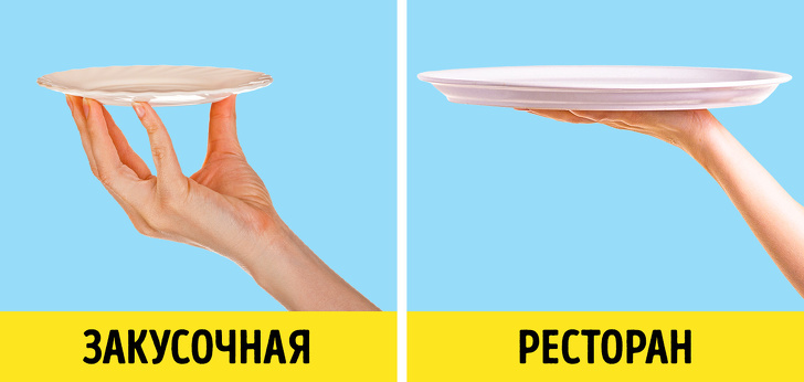 У ресторанах діють навпаки: основне блюдо подають на великих тарілках, щоб почуття голоду залишилося і ви замовили десерт.