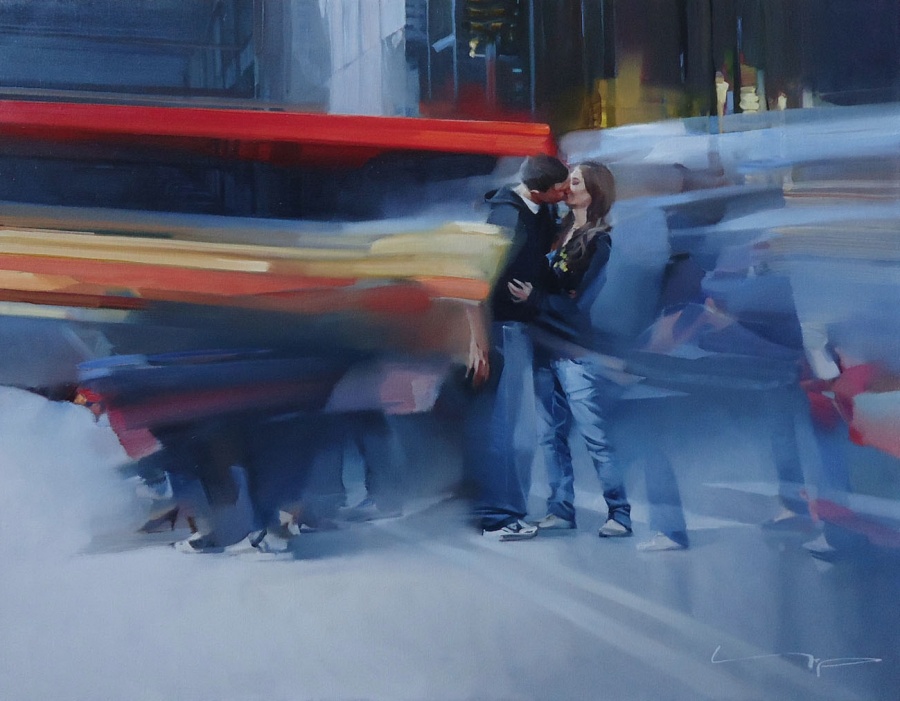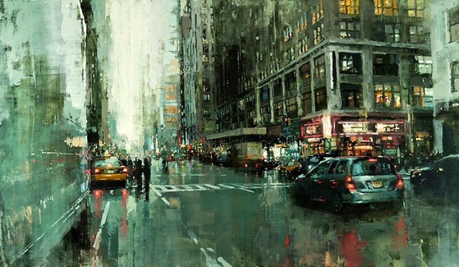 Маслом на дерев'яних панелях американський художник Джеремі Манн (Jeremy Mann) пише динамічні портрети сучасного мегаполісу. «Абстрактні форми, лінії, контраст світлих і темних плям — все створює картину, яка викликає те почуття, яке людина відчуває в натовпі і метушні міста, але також може висловити і спокій, який знаходиться при спогляданні тихої краси», — говорить художник.